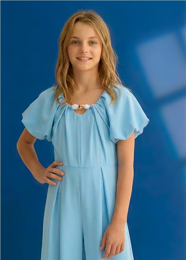 PINZA LAZADA PUNTO PLISADO AZUL